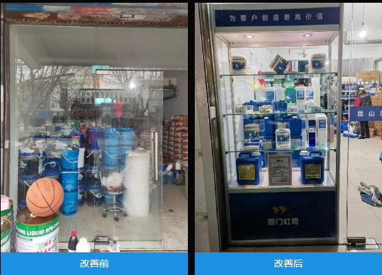 虹鷺的精益團(tuán)隊(duì)同樣以改善周的形式,從門店的5S入手,對(duì)門店的環(huán)境進(jìn)行了全面的清掃,對(duì)物品進(jìn)行全面的整理、整頓。同時(shí),從布局的角度優(yōu)化整個(gè)門店貨品進(jìn)出作業(yè),秉著“一切為工作服務(wù)”的理念,改變整個(gè)門店的經(jīng)營(yíng)形象。