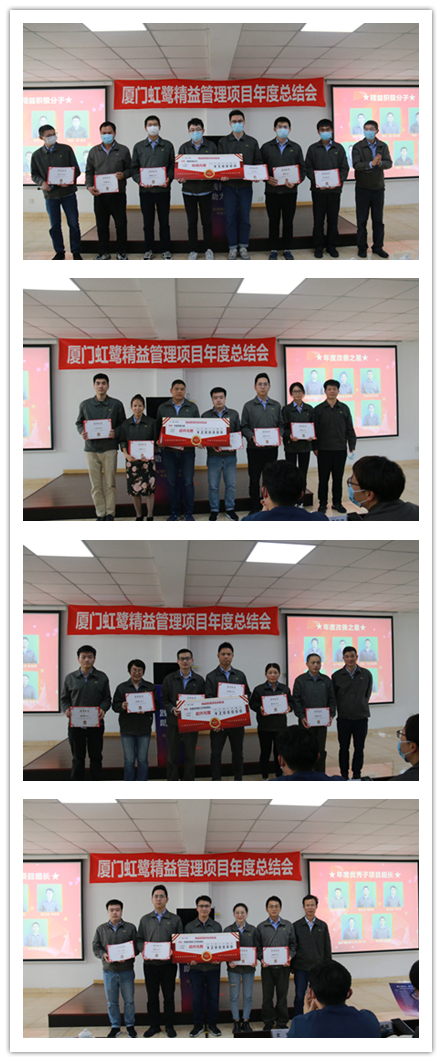 在公司執(zhí)委班子的領(lǐng)導(dǎo)下,在全體虹鷺人的共同努力下 ,廈門(mén)虹鷺精益工作取得累累碩果。會(huì)上,虹鷺高管對(duì)2021年度精益項(xiàng)目實(shí)施過(guò)程中表現(xiàn)優(yōu)秀的團(tuán)隊(duì)及個(gè)人進(jìn)行表彰獎(jiǎng)勵(lì),肯定他們?yōu)楣揪孀兏镒龀龅呢暙I(xiàn)。